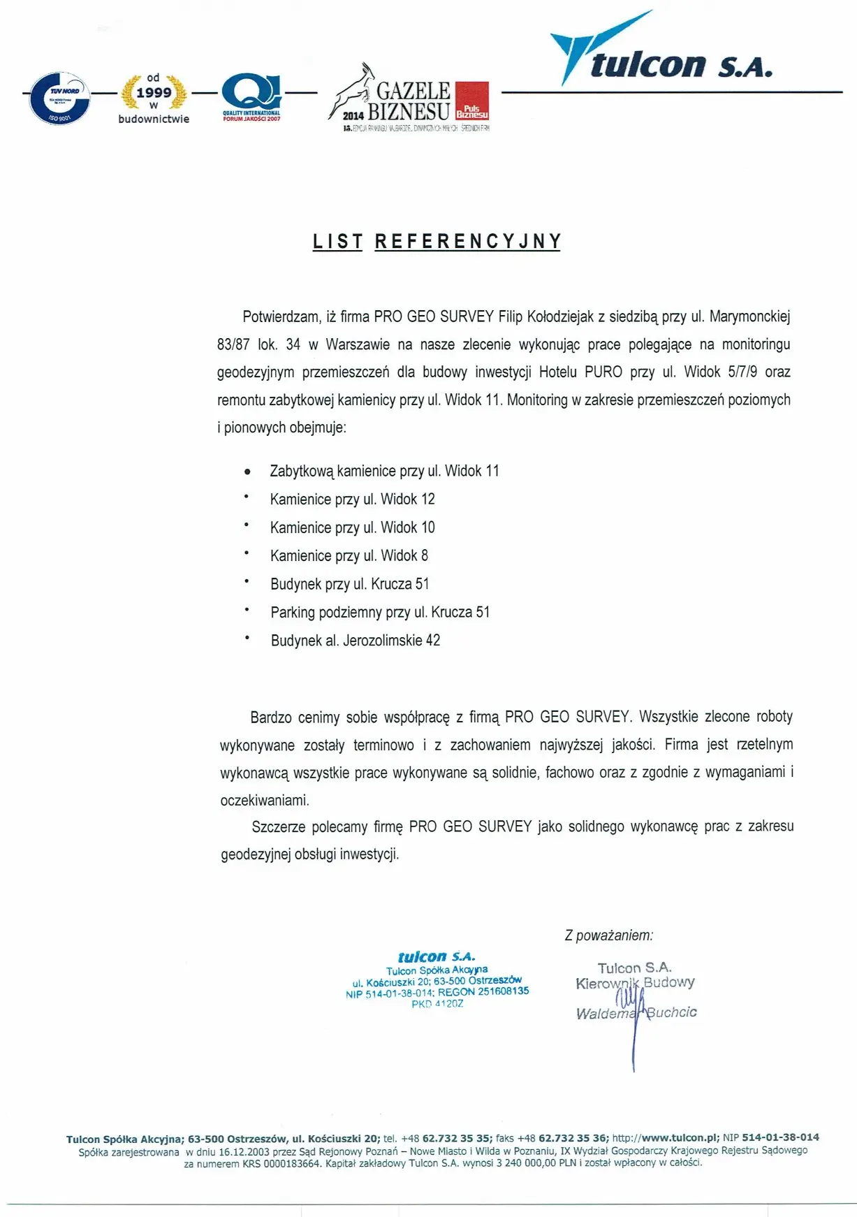 Rzetelność, precyzja i terminowość to fundamenty naszej pracy. Poznaj opinie Generalnych Wykonawców, Deweloperów i Klientów Indywidualnych, którzy wybrali PRO GEO SURVEY.